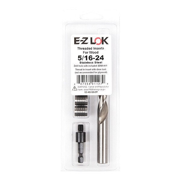 SKU G209228288Categories Hand ToolsDescription Knife Thread Insert, System of Measurement Inch, Insert Diameter 1/2 in, Overall Length 5/8 in, Internal Thread Size 5/16 In.-24, Thread Direction Right Hand, Thread Type Fine, Material Stainless Steel, Material Grade/Class 18-8, Finish Plain, Drive Type Slotted, Drill Bit Size 33/64 in, Compatible Material Wood, Minimum Material Thickness 25/32 in, Maximum Hole Diameter 0.516 in, Compatible with Manufacturer Model Number DT-524, Includes (5) Threaded Inserts, Drill, Drive ToolgraingerSKU: , mscSKU: , zoro_no: G209228288, mongo_id: 65bbe63a3aaddbd5a901663b