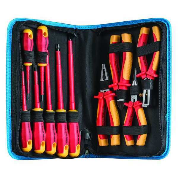 SKU G1738511Categories Hand ToolsDescription Insulated Tool Kit, Tool Storage Type Tool Case, Measurement Type SAE, Drive Size Sockets Not Included, Number of Pieces 11, Pliers Included (1) Diagonal-Cutting Pliers, (1) Lineman's Pliers, (1) Long-Nose Pliers, Screwdrivers, Keys, and Bits Included (3) Phillips Screwdrivers, (4) Slotted Screwdrivers, Sockets, Drive Tools, and Accessories Included None, Wrenches Included None, Striking and Struck Tools Included None, Cutting Tools Included None, Plumbing Tools Included NonegraingerSKU: , mscSKU: , zoro_no: G1738511, mongo_id: 65bbe61b3aaddbd5a9009e6f