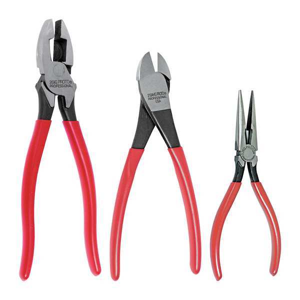 SKU G7559562Categories Hand ToolsDescription Pliers and Cutter Set, ESD-Safe No, Insulated No, Number of Pliers 3, Plier Types Needle Nose, Pliers Included 6 5/8 in Needle Nose, 8 1/8 in Diagonal Angled Head, 9 1/4 in Lineman's High Leverage, Jaw Opening Type Manual, Grip Style Standard Cushion, Features Angled Head, High Leverage, Induction Hardened Cutting Edges, Grainger Part Numbers of Pliers Included 3R211, 3R256, 4LT91, Grip Material Plastisol, Handle Color Red, Handle Style Plastisol GripsgraingerSKU: , mscSKU: , zoro_no: G7559562, mongo_id: 65bbe6103aaddbd5a9004e56
