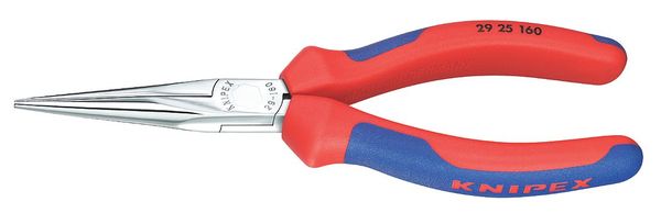 Needle Nose Plier, 6-1/4", SerratedSKU G4851360Categories Hand ToolsDescription Needle Nose Plier, Jaw Bend 0 Degrees , Overall Length 6 1/4 in, Jaw Length 2 1/8 in, Tip Width 5/64 in, Voltage Rating Not Rated, Handle Color Blue/RedgraingerSKU: , mscSKU: , zoro_no: G4851360, mongo_id: 65bbe6103aaddbd5a9004e62
