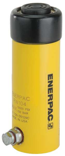 $771.24 / eachWeb priceRW104, 11180 lbs Capacity, 4.18 in Stroke, General Purpose Hydraulic Cylinder, Cylindrical ModelSKU G0738342Categories Lifting and HydraulicsDescription Hydraulic Ram, Single Acting, General Purpose, Steel, Nominal Capacity 10 ton, Max. Push Capacity 10 ton, Stroke Length 4 1/8 in, Nominal Stroke Length 4 in, Effective Push Area 2.23 sq in, Max. Pressure 10,000 psi, Oil Capacity Push 9.21 cu in, Retracted Height 6.75 in, Extended Height 10.88 in, Outside Dia. 2.25 in, Plunger Dia. 1.5 in, Plunger Thread Size 1 In.-8, Collar Thread Size 2-1/4 In.-14, Base Bolt Circle Dia. 1.56 in, Center Hole Dia. 1 1/2 in, Series RW, Includes SaddlegraingerSKU: 5UWZ9, mscSKU: 14927263, zoro_no: G0738342, mongo_id: 65bbe7833aaddbd5a909d6da