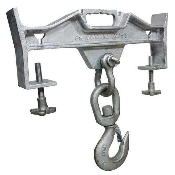 $640.11 / eachWeb priceLifting Hook, Dbl Fork, Sgl Swivel, 10000LbSKU G5230933Categories Lifting and HydraulicsDescription Forklift Lifting Hook, Double Fork, Single Swivel Hook, Load Capacity 10,000 lb, Silver, Fork Pocket Size 3-1/2 in H x 6-3/4 in W, Material Zinc Plated Cast Steel, Includes Belt, Hook, Tightening Bolt, Overall Height 22 7/16 in, Overall Width 23 ingraingerSKU: , mscSKU: , zoro_no: G5230933, mongo_id: 65bbe91622d7a989a9933334