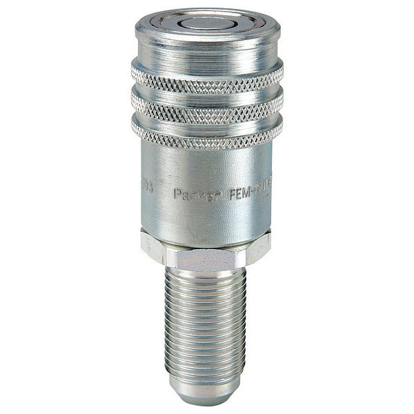 Hydraulic Quick Connect Hose Coupling, Steel Body, Sleeve Lock, 3/4"-14 Thread Size, 60 Series