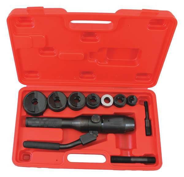 SKU G0533429Categories Lifting and HydraulicsDescription Hydraulic Knockout Punch, For Use With Tool Type Manual Hydraulic, Maximum Sheet Metal Capacity-Steel 10 ga, Includes Ratchet Yes, Material Application Aluminum, Fiberglass, Mild Steel, Plastic, Slug Type Falls Free, Number of Punch/Dies Sets 10, Knockout Sizes Included 1 1/2 in, Nominal Hole Size 1 15/16 in, Punch Shape CirclegraingerSKU: 39CG63, mscSKU: , zoro_no: G0533429, mongo_id: 65bbe6cf3aaddbd5a9055d91