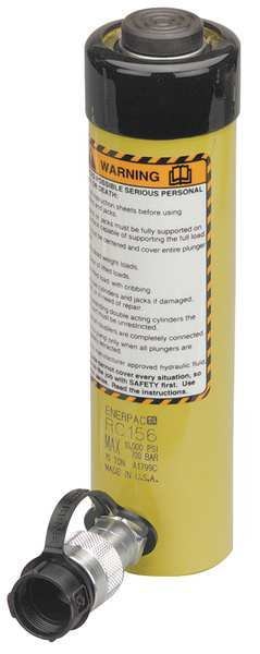 RC1510, 15.7 ton Capacity, 10.00 in Stroke, General Purpose Hydraulic CylinderSKU G3423777Categories Lifting and HydraulicsDescription Hydraulic Ram, Single Acting, General Purpose, Steel, Nominal Capacity 15 ton, Max. Push Capacity 15 ton, Stroke Length 10 in, Nominal Stroke Length 10 in, Effective Push Area 3.14 sq in, Max. Pressure 10,000 psi, Oil Capacity Push 31.42 cu in, Retracted Height 14.69 in, Extended Height 24.56 in, Outside Dia. 2.75 in, Plunger Dia. 1.63 in, Plunger Thread Size 1 In.-8, Collar Thread Size 2-3/4 In.-16, Base Bolt Circle Dia. 1.88 in, Center Hole Dia. 1 5/8 in, Series RC, Includes Coupler, Dust CapgraingerSKU: 6W464, mscSKU: 80012982, zoro_no: G3423777, mongo_id: 65bbe6cf3aaddbd5a9055dc1