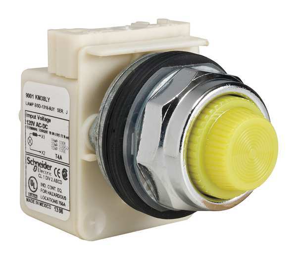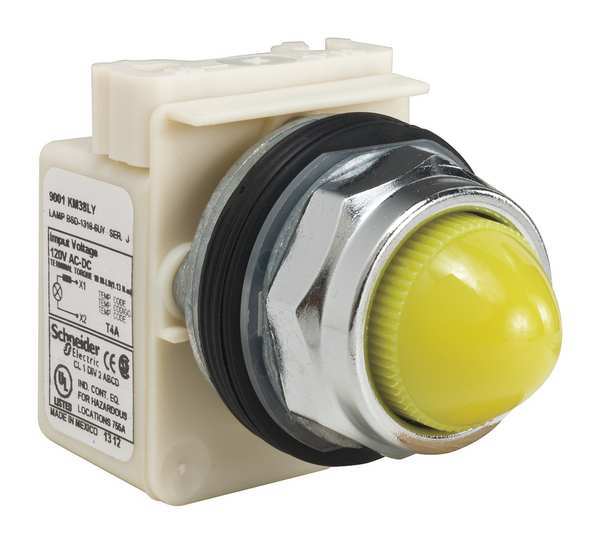 SKU G6355587Categories Lighting ToolsDescription Pilot Light Complete, Voltage 120V AC, Color Yellow, Lamp Type LED, Shape Round, Terminal Connection Pressure Plate, Lens Material Plastic, 30 mm, Lamp Module Type Full Voltage, Basic Material Metal, Lens Type Domed, Lamp Voltage 120V AC, Replacement Lamps N/A, Body Material Chrome Plated Zinc Die Cast, NEMA Rating 1, 12, 13, 2, 3, 3R, 4, 6, IP Rating 66, Standards CE, CSA, ULgraingerSKU: 45C484, mscSKU: , zoro_no: G6355587, mongo_id: 65bbe96f22d7a989a9955328