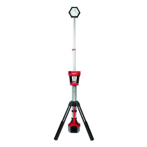 M18 ROCKET Dual Power Tower LightSKU G5896672Categories Lighting ToolsDescription Cordless Tripod Light, Battery Platform M18, Series ROCKET, Light Output Mode High / Medium / Low, Brightness Level 700 lm, 1,100 lm, 2,500 lm, Maximum Brightness Level 2,500 lm, Minimum Brightness Level 700 lm, Mount Type Tripod, Maximum Height 84 in, Minimum Height 40 1/2 in, Light Distribution 90 Degrees , Head Type Rotating, Maximum Head Rotation Angle 240 Degrees , Cordless Tool Kit Contents Bare Tool, Run Time 4 hr, 8 hr, 13 hr, Voltage 18 V, Battery Included / Bare Tool Bare ToolgraingerSKU: 481J05, mscSKU: 31500747, zoro_no: G5896672, mongo_id: 65bbe7f59a749db822768e71