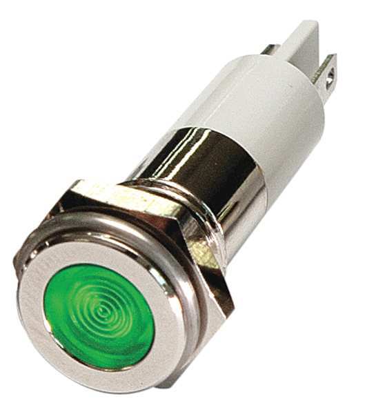 SKU G4971522Categories Lighting ToolsDescription Raised Indicator Light, Neon, Nylon Body With Polycarbonate Lens and Stainless Steel Bezel, Green, Voltage 120V AC, Size 1/2 in Mounting dia, Electrical Connection 6 in Wire Leads, Shape Round, Current Drawn 2 mA, Average Life 15,000 hr, NEMA Rating 1, IP Rating 40, Panel Thickness 0.030 in to 0.093 in, Standards cULus$10.53 / eachWeb price