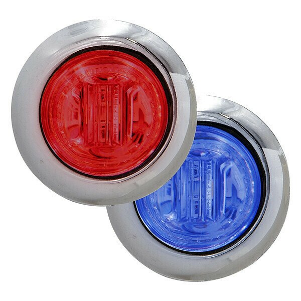 Clearance Marker Light, Blue/Red, LED,SKU G610437132Categories Lighting ToolsDescription Clearance Marker Light, Light Type Clearance Light, Lighting Technology LED, Shape Round, Mount Style Surface, Lens Color Blue, Red, Mount Type Hole, Overall Diameter 3/4 in, Overall Height Not Applicable, Overall Width Not Applicable, Standards DOT Compliant, FMVSS 108, SAE J2042, SAE J592, IP Rating IP67, Series M09340-DC, Vehicle Class 1, 2, 3, 4, 5, 6, 7, 8, 9, 10, 11, 12, 13, Current 30 mA, Electrical Connection Bullet Connectors, Features Dual Color, Housing Material Stainless Steel$12.06 / eachWeb price -