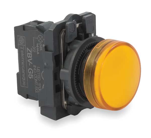 Pilot Light, LED, Orange, 22mm, 110-120VACSKU G2493041Categories Lighting ToolsDescription Pilot Light Complete, Voltage 110 to 120V AC, Color Yellow, Lamp Type LED, Shape Round, Terminal Connection Screw Clamp, 22 mm, Lamp Module Type Full Voltage, Basic Material Plastic, Body Material Plastic, NEMA Rating 13, 4, 4X, IP Rating 66, Includes Light Module and Head, Mounting Base, Standards UL E164353 CCN NKCR - CSA LR44087 Class 321103 - CE MarkedgraingerSKU: 2UZC6, mscSKU: , zoro_no: G2493041, mongo_id: 65bbe7bf9a749db8227539bf