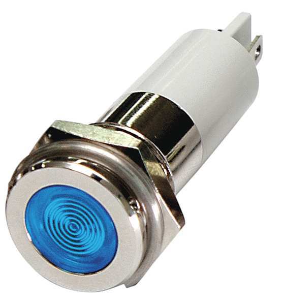 SKU G4692877Categories Lighting ToolsDescription Flat Indicator Light, LED, Brass Plated Chrome, LED, Plastic (ABS), Blue, Voltage 24V DC, Size 12mm Mounting dia, Electrical Connection Male .110 Connector, Shape Round, Current Drawn 20 mA, Average Life 100,000 hr, IP Rating 40, Panel Thickness Up to 0.160 in, Standards ROHS$7.26 / eachWeb price