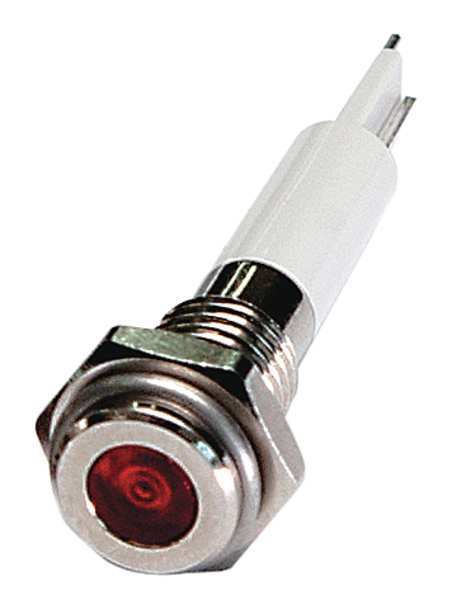 Flat Indicator Light, Red, 24VDC, Size: 6mm Mounting diaSKU G4654623Categories Lighting ToolsDescription Flat Indicator Light, LED, Brass Plated Chrome, LED, Plastic (ABS), Red, Voltage 24V DC, Size 6mm Mounting dia, Electrical Connection Lead for Soldering, Shape Round, Current Drawn 20 mA, Average Life 100,000 hr, IP Rating 40, Panel Thickness Up to 0.160 in, Standards ROHS$4.34 / eachWeb price -