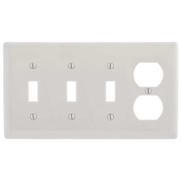 Toggle/Duplex Receptacle Wall Plate, Number of Gangs: 4 Thermoplastic, Smooth Finish, Light AlmondSKU G604242193Categories Lighting ToolsDescription Toggle/Duplex Receptacle Wall Plate, Color Light Almond, Material Polycarbonate, Number of Gangs 4, Plate Size Standard, Resistance Properties Impact Resistant, Combination Type Duplex Outlet/Toggle, Finish Satin, For Switch Type Toggle, Number of Outlet Openings 1, Number of Switch Openings 3, Outlet Orientation Vertical, Overall Height 4.6 in, Overall Width 4.7 in, Standards cULus Listed, Wall Plate Type TogglegraingerSKU: 784FG1, mscSKU: , zoro_no: G604242193, mongo_id: 65bbe77f3aaddbd5a909b634