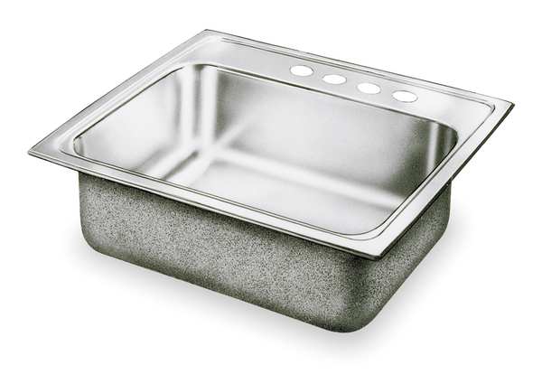 Drop-In Sink, 4 Hole, Lustrous Highlighted Satin FinishSKU G2445904Categories Lighting ToolsDescription Single Bowl Drop-in Sink, Bowl Depth 7 3/4 in, Rectangular, Bowl Size 21 in x 15 3/4 in, Silver, Drop-In, Drain Opening 3 1/2 in, Faucet Hole Dia. 1 1/2 in, Centerset, Faucet Mounting Centers 4 in, Lustrous Satin, Gauge 18 ga, Mounting Location - Faucet Deck, Countertop, No. of Bowls 1, Number of Faucet Holes 4, Overall Height 8 1/8 in, Overall Length 25 in, Overall Width 22 in, Elkay, Lustertone Classic Series, Stainless Steel, Sink Type General PurposegraingerSKU: 4YK15, mscSKU: , zoro_no: G2445904, mongo_id: 65bbe75e3aaddbd5a908f227