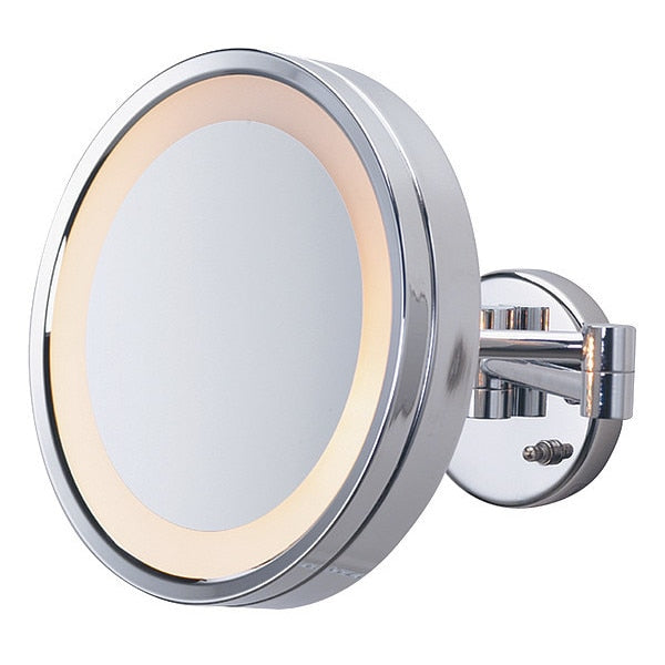 11" W, Chrome Lighted Makeup MirrorSKU G5415864Categories Lighting ToolsDescription Lighted Makeup Mirror, Shape Round, Tilt Type Adjustable, Overall Height 10 in, Overall Width 11 in, Frame Finish Chrome, Mounting Location Wall, Power Source Electric Corded, Mirror Surface Glass, Mirror Type With Frame, Includes Lamps Yes, Lamp Type Incandescent, Magnification 5X, Overall Diameter 10 in, ADA Compliant No, Product Type Makeup Mirror, Arm Length 14 in, Cord Length 6 ft, Frame Material Metal, Includes Mounting Hardware Yes, Number of Sides 1, Overall Depth 4 in, Plug Type 2 PronggraingerSKU: 30AC24, mscSKU: , zoro_no: G5415864, mongo_id: 65bbe72f3aaddbd5a907d7b4