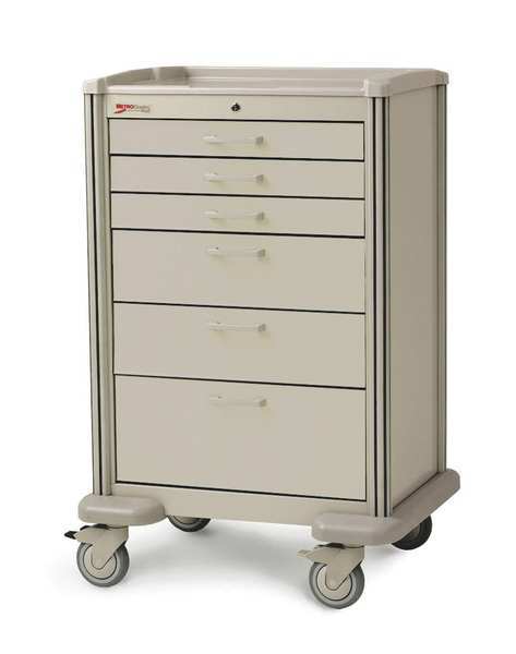 Medical Cart, Steel/Polymer, Light TaupeSKU G3444029Categories Lighting ToolsDescription General Medical Supply Cart with Drawers, Assembled/Unassembled Assembled, Material Polymer, Steel, Load Capacity 600 lb, Caster Wheel Dia. 5 in, Caster Wheel/Tread Material Polyurethane, Caster/Wheel Configuration (2) Swivel, (2) Swivel with Brake, Caster Brake Type Face Contact Brake, Cabinet Color Taupe, Drawer Color White, Number of Drawers 6, Number of Shelves 1graingerSKU: 3CWG3, mscSKU: , zoro_no: G3444029, mongo_id: 65bbee1d526e052139aeff99