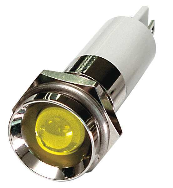 SKU G4658211Categories Lighting ToolsDescription Protruding Indicator Light, LED, Brass Plated Chrome, LED, Plastic (ABS), Yellow, Voltage 24V DC, Size 12mm Mounting dia, Electrical Connection Male .110 Connector, Shape Round, Current Drawn 20 mA, Average Life 100,000 hr, IP Rating 40, Panel Thickness Up to 0.160 in, Standards ROHS$3.36 / eachWeb price