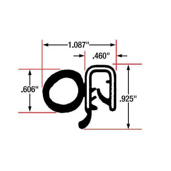 Edge Grip Seal, EPDM, 10 ft Length, 1.087 in Overall Width, Style: Side BulbSKU G804393060Categories Lighting ToolsDescription Edge Grip Seal, Application Boat Hatches, Closet Doors, Storage Containers, Tool Boxes, Weatherproofing Seal, Color Black, For Material Thickness 0.098 in, Inside Height 5/8 in, Material EPDM, Maximum Operating Temperature 150 Degrees F, Minimum Operating Temperature -20 Degrees F, Outside Edge Trim Height Not Applicable, Outside Edge Trim Width 15/16 in, Overall Height 15/16 in, Overall Length 10 ft, Overall Width 1 1/16 in, Profile Shape Side Bulb$22.44 / eachWeb price -