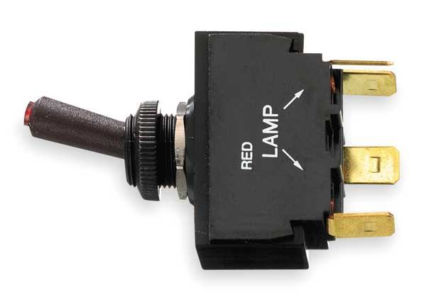 SKU G2701246Categories Lighting ToolsDescription Marine Lighted Toggle Switch, Contact Form SPST, Number of Connections 4, Switch Function On/Off, Terminals 1/4 in Solder Lug/Quick Connect Tab, Mounting Hole 0.50 in dia, DC Contact Rating 15A @ 12V DC, Actuator Style Toggle w/Lighted Tip - Red, Actuator Length 0.6 in, Stem Length 0.37 in, Stem Dia. and Thread Size 0.47 In.-32 UNC-2A, 0.480 in dia, Operating Temp. Range -10 Degrees to 105 Degrees F, Actuator Color Black, Stem Color Black, Includes Red Pilot LightgraingerSKU: 3HZ83, mscSKU: , zoro_no: G2701246, mongo_id: 65bbea0522d7a989a998dd10