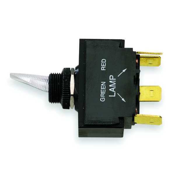 SKU G0531036Categories Lighting ToolsDescription Marine Lighted Toggle Switch, Contact Form SPST, Number of Connections 4, Switch Function On/Off, Terminals 1/4 in Solder Lug/Quick Connect Tab, Mounting Hole 0.50 in dia, DC Contact Rating 15A @ 12V DC, Actuator Style Lighted Stem - Green/Red, Actuator Length 0.67 in, Stem Length 0.5 in, Stem Dia. and Thread Size 0.47 In.-32 UNC-2A, 0.480 in dia, Operating Temp. Range -10 Degrees to 105 Degrees F, Actuator Color Clear, Stem Color SilvergraingerSKU: 3HZ81, mscSKU: , zoro_no: G0531036, mongo_id: 65bbe98f22d7a989a9962b7e