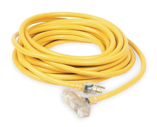 100 ft. 10/3 3-Outlet Lighted Extension Cord SJTWSKU G0482185Categories Lighting ToolsDescription Lighted Extension Cord, Location Outdoor, Cord Length 100 ft, Wire Size 10 AWG, Max. Amps 15 A, Voltage 125V AC, Plug Configuration NEMA 5-15P, Receptacle Configuration NEMA 5-15R, Cord Ending T-Shape, Number of Outlets 3, Jacket Color Yellow, Jacket Material PVC, Trade Designation SJTW, Cord Shape Round, Temp. Rating -40 Degrees to 167 Degrees F, Number of Conductors 3, Power Indicator Yes, Plug Style Straight, Max. Watts 1,875 W, Nominal Outside Dia. 0.56 ingraingerSKU: 1XUR5, mscSKU: , zoro_no: G0482185, mongo_id: 65bbe98022d7a989a995e2f4