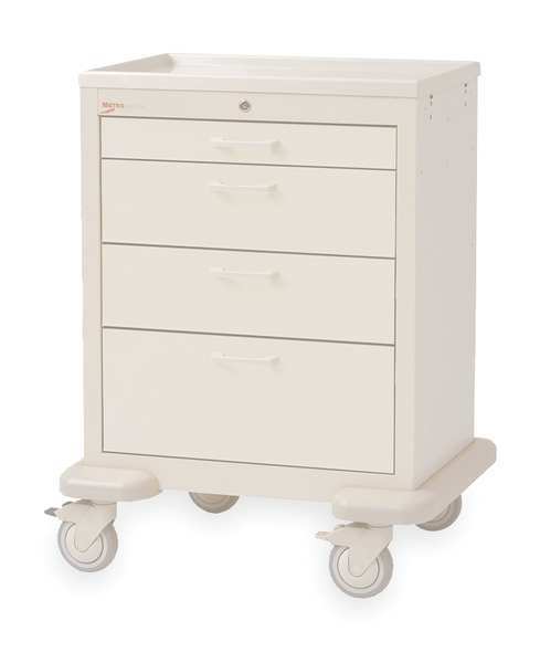 Medical Cart, Steel/Polymer, Light TaupeSKU G3444071Categories Lighting ToolsDescription General Medical Supply Cart with Drawers, Assembled/Unassembled Assembled, Material Polymer, Steel, Load Capacity 600 lb, Caster Wheel Dia. 5 in, Caster Wheel/Tread Material Polyurethane, Caster/Wheel Configuration (2) Swivel, (2) Swivel with Brake, Caster Brake Type Face Contact Brake, Cabinet Color Taupe, Drawer Color White, Number of Drawers 4, Number of Shelves 1graingerSKU: 3CWF7, mscSKU: , zoro_no: G3444071, mongo_id: 65bbe98022d7a989a995da86