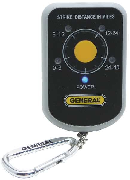 Personal Lightning Detector, 40 MilesSKU G0369896Categories Lighting ToolsDescription Lightning Detector, Ranges 0 to 6 Miles, 12 to 24 Miles and 24 to 40 Miles., 6 to12 Miles, Audible, Visual and Vibration Alarms, Height 3 1/4 in, Width 2 1/8 in, Depth 1 in, Weight 6 oz, Power Source (2) AAA Batteries, Includes (2) Batteries, CarabineergraingerSKU: 5CFK7, mscSKU: , zoro_no: G0369896, mongo_id: 65bbe98022d7a989a995cc5b