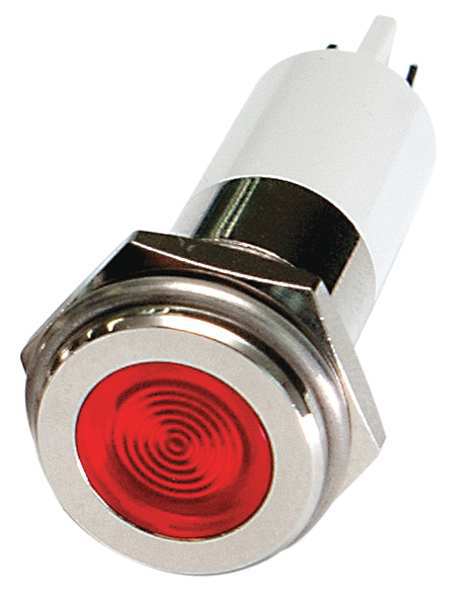 SKU G8489266Categories Lighting ToolsDescription Raised Indicator Light, LED, Nylon Body With Polycarbonate Lens and Stainless Steel Bezel, Red, Voltage 240V AC/DC, Size 1/2 in Mounting dia, Electrical Connection 6 in Wire Leads, Shape Round, Current Drawn 4.17 mA, Average Life 15,000 hr, IP Rating 40, Panel Thickness 0.030 in to 0.093 in, Standards ULgraingerSKU: 22NY55, mscSKU: , zoro_no: G8489266, mongo_id: 65bbe8fd22d7a989a992a383