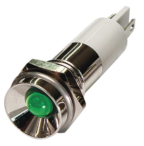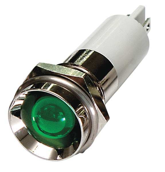 Protrude Indicator Light, Green, 12VDCSKU G4667022Categories Lighting ToolsDescription Protruding Indicator Light, LED, Brass Plated Chrome, LED, Plastic (ABS), Green, Voltage 12V DC, Size 10mm Mounting dia, Electrical Connection Male .110 Connector, Shape Round, Current Drawn 20 mA, Average Life 100,000 hr, IP Rating 40, Panel Thickness Up to 0.160 in, Standards ROHSgraingerSKU: , mscSKU: , zoro_no: G4667022, mongo_id: 65bbe7063aaddbd5a906b87d