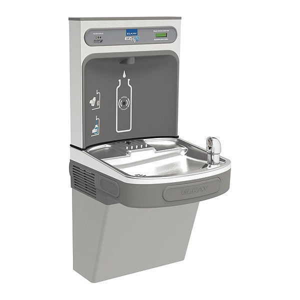 SKU G0413038Categories Lighting ToolsDescription Drinking Fountain with Bottle Filler, Station Type Bottle Filling Dispenser, Single Fountain, Fountain Actuation Front Pushbar/Side Pushbar, Bottle Dispenser Actuation Sensor, Includes Water Filter Yes, ADA Compliant Yes, Cooling Capacity Not Applicable, Housing Color Light Gray, Housing Finish Granite, Overall Height 39 1/8 in, Overall Depth 19 in, Overall Width 18 3/8 in, Mounting Location Wall Surface Mount, Bi-Level Field Adjustable No, Includes Pet Bowl No, Refrigeration Non-RefrigeratedgraingerSKU: 34K039, mscSKU: , zoro_no: G0413038, mongo_id: 65bbe96322d7a989a9950a04