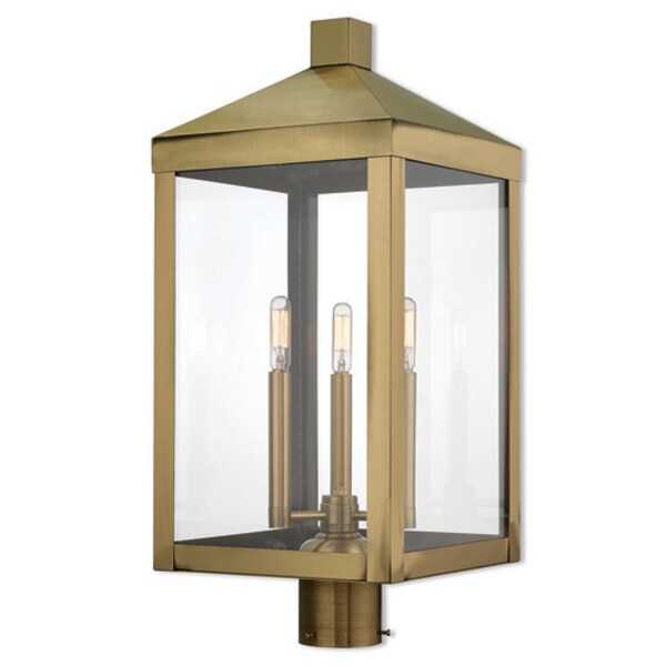 Nyack 3 Light Antique Brass Outdoor Post Top Lantern