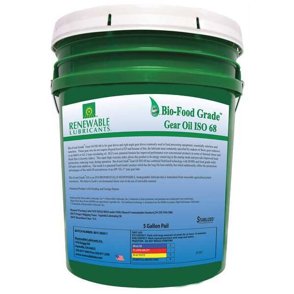 5 gal Bio-Food Grade Gear Oil Pail 68 ISO Viscosity, Light Amber