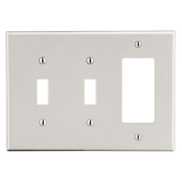 Wallplate, 3-Gang, 2) Toggle 1) Decorator, Light AlmondSKU G200490745Categories Lighting ToolsDescription Rocker Wall Plate, Color Light Almond, Material Polycarbonate, Number of Gangs 3, Plate Size Standard, Resistance Properties Impact Resistant, Combination Type Decorator-Rocker/Toggle, Finish Satin, For Switch Type Rocker, Toggle, Number of Outlet Openings 1, Number of Switch Openings 3, Outlet Orientation Vertical, Overall Height 0.3 in, Overall Width 6.5 in, Standards cULus Listed, UL 94 Flammability Rating V-2, Wall Plate Type Toggle, For Use With ReceptaclegraingerSKU: 784FF3, mscSKU: , zoro_no: G200490745, mongo_id: 65bbe8bc22d7a989a9912672
