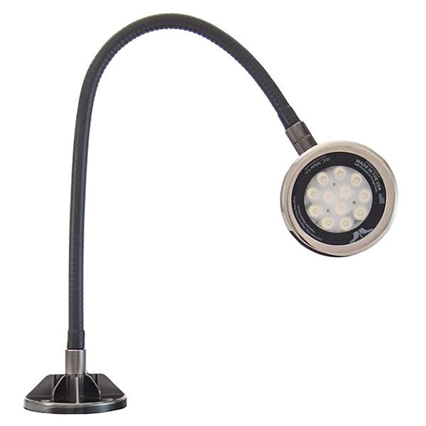 SKU G607714581Categories Lighting ToolsDescription Spot Light, Arm Reach 22 in, Arm Design Gooseneck, Bulb Wattage 18 W, Color Black, IP Rating IP65, Lighting Technology LED, Maximum Brightness 2,750 lm, Mount Type Screw-Down Base, Operating Voltage 100 to 240V AC, Power Cord Length 7 1/2 ft, Arm Adjustability Any Which Way, Base Diameter 4 in, Color Rendering Index Not Applicable, Color Temperature 5000K, Electrical Connection Type Power Cord, Head Diameter 4.5 in, Arm Material Aluminum, Beam Angle 30 DegreesgraingerSKU: 801CK5, mscSKU: , zoro_no: G607714581, mongo_id: 65bbe8b222d7a989a990d73c