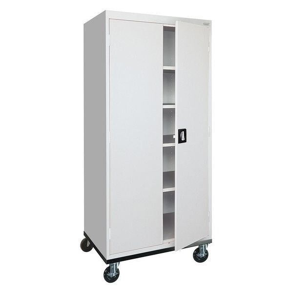 Solid Door Storage Cabinet, 36 in W, 78 in H, 24 in D, Light GraySKU G1820388Categories Lighting ToolsDescription Storage Cabinet, Base Type Casters, Body Panel Type Solid, Cabinet Color Gray, Cabinet Material Steel, Cabinet Storage Components Shelves, Door Handle Type Recessed Pull, Door Type Solid, Duty Rating Medium Duty, For Use Indoors/Outdoors No, Frame Assembled Assembled, Load Capacity per Shelf 230 lb, Lock Type Keyed, Mobility Mobile, Mounting Location Freestanding, Number of Shelves 2, Overall Depth 24 in, Overall Height 78 in, Overall Width 36 in, Audit Trail Storage NonegraingerSKU: 4BE60, mscSKU: , zoro_no: G1820388, mongo_id: 65bbe85f22d7a989a98efb83