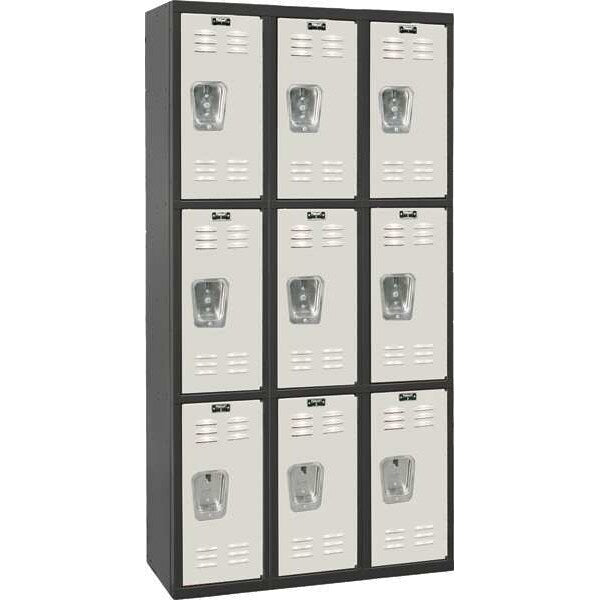 Wardrobe Locker, 36 in W, 18 in D, 72 in H, (3) Tier, (3) Wide, Light Gray/Black