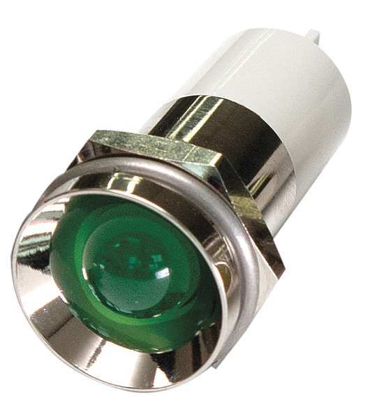 SKU G4689011Categories Lighting ToolsDescription Protruding Indicator Light, LED, Brass Plated Chrome, LED, Plastic (ABS), Green, Voltage 110V AC, Size 16mm Mounting dia, Electrical Connection Male .110 Connector, Shape Round, Current Drawn 4.4 mA, Average Life 100,000 hr, IP Rating 40, Panel Thickness Up to 0.160 in, Standards ROHS$9.18 / eachWeb price
