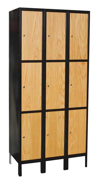 Wardrobe Locker, 36 in W, 18 in D, 78 in H, (3) Tier, (3) Wide, Light Wood/BlackSKU G9868731Categories Lighting ToolsDescription Wardrobe Locker, Audit Trail Storage None, Frame Assembled Unassembled, Number of Tiers 3, Number of Units Wide 3, Door Type Solid, Frame Material Thickness 16 ga, Includes Number Plates Yes, Locker Color Light Wood/Black, Lock Type Keyed, Overall Depth 18 in, Overall Height 78 in, Overall Width 36 in, Handle Type None, Includes Number Plate, Locker Finish Powder Coated, Locker Material Steel, Number of Lockers 9, Opening Depth 17 in, Opening Height 69 in, Opening Width 9 1/4 ingraingerSKU: 4VEP2, mscSKU: , zoro_no: G9868731, mongo_id: 65bbe6343aaddbd5a9013997