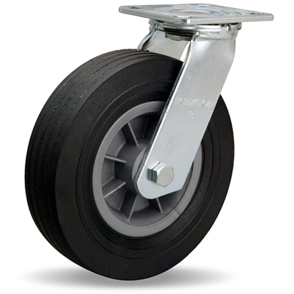 Cush-N-Tuf Swivel Caster, 8" x 2 1/2" Ace-Tuf Rubber (75A) on Light Duty Polypropylene Wheel
