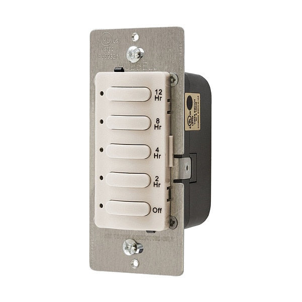 Timer, Electronic, 120/277V, Light AlmondSKU G5394295Categories Lighting ToolsDescription Countdown Timer, Min. Time Setting 2 hr, Max. Time Setting 12 hr, Voltage 120/277V AC, Watts 1000/1400, Amps 8.30, 1-Pole, HP @ 120V 1/6 hp, Type of Switch Electronic, Color Light Almond, Length 4 1/2 in, Width 2 in, Style Wall Switch, Depth 3 in, Number of Gangs 1, Features Timer Has LEDs That Indicate Time Remaining Before Turn-Off, Standards UL/cULgraingerSKU: 29RW82, mscSKU: , zoro_no: G5394295, mongo_id: 65bbe5a93aaddbd5a9fd9eac
