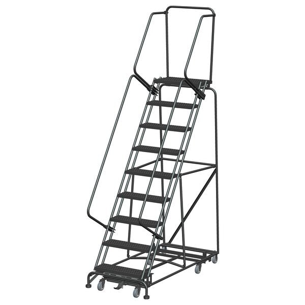 $1,421.24 / eachWeb price123 in H Steel Rolling Ladder, 9 StepsSKU G5207100Categories Material HandlingDescription Rolling Ladder, Material Steel, Platform Height 90 in, Handrails Included Yes, Handrail Height 30 in, Overall Height 123 in, Number of Steps 9, Assembled, Load Capacity 450 lb, Step Tread Expanded Metal, Platform Depth 14 in, Platform Width 24 in, Bottom Width 32 in, Base Depth 68 in, Overall Width 32 in, Climbing Angle 59 Degrees , Step Depth 7 in, Step Width 24 in, Ladder Actuation Weight Activated Step Lock, Finish Powder Coated, Color Gray, Standards ANSI, OSHAgraingerSKU: 41LF93, mscSKU: , zoro_no: G5207100, mongo_id: 65bbe82a22d7a989a98dd519