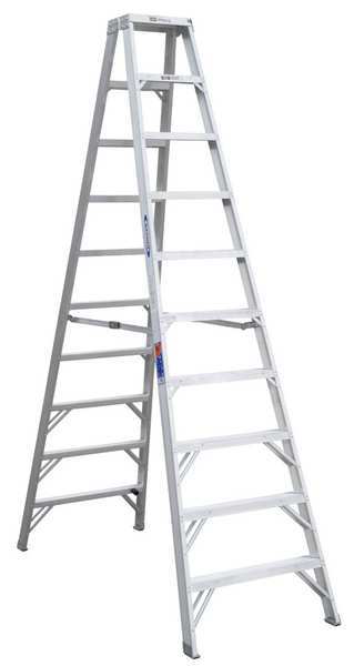 SKU G2193204Categories Material HandlingDescription Twin Stepladder, Material Aluminum, ANSI Type IA, Ladder Height 10 ft, Load Capacity 300 lb, Number of Steps 9, Base Spread 78 in, Bottom Width 31 3/4 in, Step Depth 3 in, Step Tread Ribbed, Series T370, Rung/Step Spacing 12 ingraingerSKU: 3AZY4, mscSKU: , zoro_no: G2193204, mongo_id: 65bbe82a22d7a989a98dd4ee
