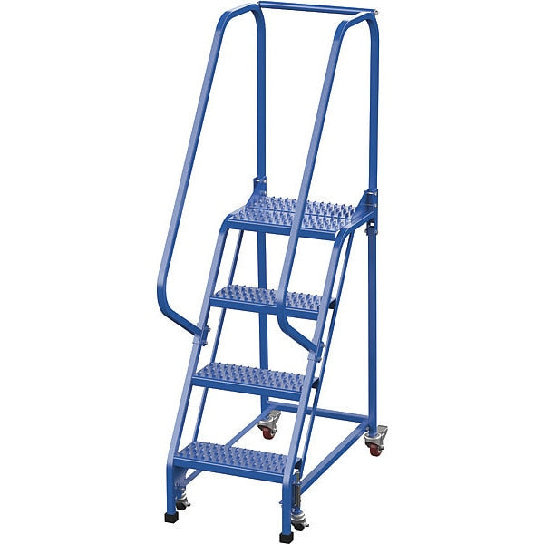 $791.24 / eachWeb price66 in H Steel Rolling Ladder, 4 StepsSKU G2125840Categories Material HandlingDescription Rolling Ladder, Material Steel, Platform Height 36 in, Handrails Included Yes, Handrail Height 30 in, Overall Height 66 in, Number of Steps 4, Unassembled, Load Capacity 450 lb, Step Tread Antislip Vinyl, Platform Depth 8 in, Platform Width 16 in, Bottom Width 25 in, Base Depth 34 in, Overall Width 25 in, Climbing Angle 59 Degrees , Step Depth 8 in, Step Width 16 in, Ladder Actuation Weight Activated Step Lock, Finish Powder Coated, Color Blue, Standards ANSI, OSHA, Includes Left HandrailgraingerSKU: 6LYE3, mscSKU: , zoro_no: G2125840, mongo_id: 65bbe82a22d7a989a98dd541