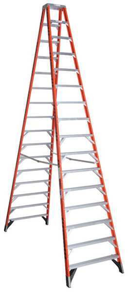 SKU G0588506Categories Material HandlingDescription Twin Stepladder, Material Fiberglass, ANSI Type IA, Ladder Height 16 ft, Load Capacity 300 lb, Number of Steps 15, Base Spread 120 1/4 in, Bottom Width 41 7/8 in, Step Depth 3 in, Step Tread Ribbed, Series T7400, Rung/Step Spacing 12 ingraingerSKU: 4XP54, mscSKU: , zoro_no: G0588506, mongo_id: 65bbe93c22d7a989a99419a4
