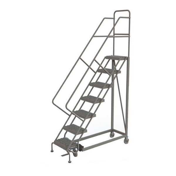 100 in H Steel Rolling Ladder, 7 StepsSKU G0997230Categories Material HandlingDescription Rolling Ladder, Material Steel, Platform Height 70 in, Handrails Included Yes, Handrail Height 30 in, Overall Height 100 in, Number of Steps 7, Assembled, Load Capacity 450 lb, Step Tread Expanded Metal, Platform Depth 20 in, Platform Width 24 in, Bottom Width 30 in, Base Depth 63 in, Overall Width 30 in, Climbing Angle 59 Degrees , Step Depth 7 in, Step Width 24 in, Ladder Actuation Foot Activated Step Lock, Finish Powder Coated, Color Gray, Standards ANSI, OSHA, Rear Exit NograingerSKU: 21UT31, mscSKU: , zoro_no: G0997230, mongo_id: 65bbe91622d7a989a993341a