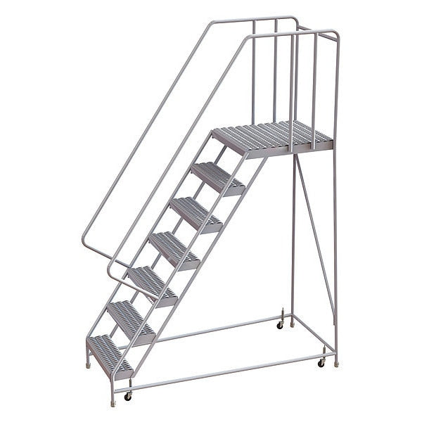 102 in H Aluminum Rolling Ladder, 7 StepsSKU G0978540Categories Material HandlingDescription Rolling Ladder, Material Aluminum, Platform Height 70 in, Handrails Included Yes, Handrail Height 32 in, Overall Height 102 in, Number of Steps 7, Assembled, Load Capacity 350 lb, Step Tread Serrated, Platform Depth 28 in, Platform Width 24 in, Bottom Width 32 in, Base Depth 71 in, Overall Width 32 in, Climbing Angle 56 Degrees , Step Depth 7 in, Step Width 24 in, Ladder Actuation Spring-Loaded Casters, Finish Aluminum Mill, Color Aluminum, Standards ANSI, OSHA, Includes Crutch TipsgraingerSKU: 25NY47, mscSKU: , zoro_no: G0978540, mongo_id: 65bbe91622d7a989a99333da