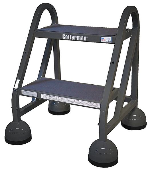 SKU G0895034Categories Material HandlingDescription Step Stool Product Group Rolling Step, Number of Steps 2, Overall Height 22 in, Material Steel, Load Capacity 450 lb, Top Step Height 18 in, Top Step Depth 8 in, Bottom Width 22 in, Base Depth 26 in, Color Black, Finish Powder Coated, Standards OSHA 1910.29 and ANSI A14.7, Ladder Actuation Spring-Loaded Casters, Step Tread Rubber Mat, Step Width 16 ingraingerSKU: , mscSKU: , zoro_no: G0895034, mongo_id: 65bbe91622d7a989a9933438