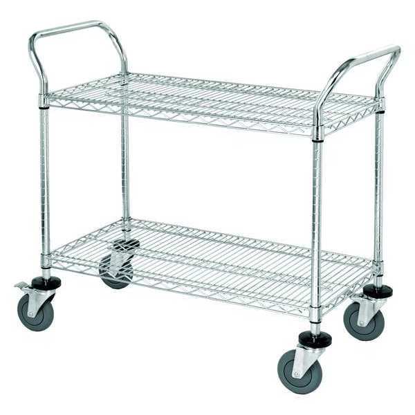 Utility Cart, SS/Chrome, 38x18x38, 3 ShelfSKU G6481964Categories Material HandlingDescription Corrosion-Resistant Utility Cart with Shallow Lipped Wire Shelves, Load Capacity 375 lb, Number of Shelves 3, Shelf Width 18 in, Shelf Length 36 in, Material Stainless Steel, Finish Chrome, Caster Wheel Dia. 4 in, Color Silver, Caster Brake Type No Brake Included, Caster Wheel/Tread Material Rubber, Caster/Wheel Configuration (4) Swivel, Distance Between Shelves 10 in, Handle Type (2) Raised, Lip Style 4-Sided Lipped, Shelf Orientation Flat, Collapsible No, Overall Height 38 ingraingerSKU: 20W637, mscSKU: , zoro_no: G6481964, mongo_id: 65bbe6ef3aaddbd5a9063208