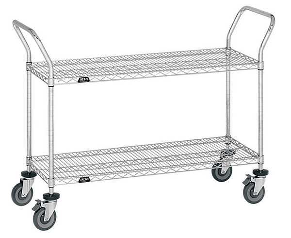 Wire Utility Cart, 51 in. L x 24 in. WSKU G2418571Categories Material HandlingDescription Corrosion-Resistant Utility Cart with Shallow Lipped Wire Shelves, Load Capacity 1,200 lb, Number of Shelves 2, Shelf Width 24 in, Shelf Length 48 in, Material Stainless Steel, Finish Stainless Steel, Caster Wheel Dia. 5 in, Color Silver, Caster Brake Type Side Pedal Brake, Caster Wheel/Tread Material Polyurethane, Caster/Wheel Configuration (2) Swivel, (2) Swivel with Brake, Distance Between Shelves 25 in, Handle Type (2) Raised, Lip Style 4-Sided Lipped, Shelf Orientation Flat, Collapsible NograingerSKU: 45TW16, mscSKU: , zoro_no: G2418571, mongo_id: 65bbe6ef3aaddbd5a9063220