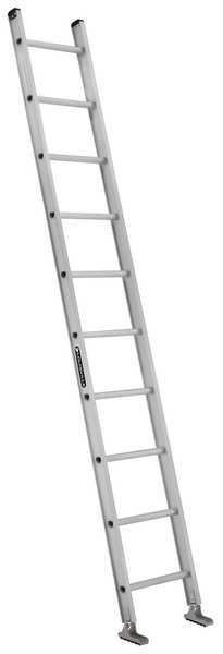 SKU G7622492Categories Material HandlingDescription Straight Ladder, Ladder Height 10 ft, Overall Width 17 13/16 in, Material Aluminum, Load Capacity 300 lb, Number of Rungs 10, Top to Bottom Rung 9 ft, Rung Dia. 1 1/2 in, Rung/Step Spacing 12 in, Rung Width 15 13/16 in, Top Step Height 9 ft 6 in, Finish Natural, Rung Shape D-Rung, Standards ANSI, OSHA, Includes Full I-Beam, Mar-Resistant Rail End Caps, Swivel Safety Shoes, ANSI Type IA, Net Weight 18.0 lbgraingerSKU: 36Y335, mscSKU: , zoro_no: G7622492, mongo_id: 65bbe8ef22d7a989a9925067